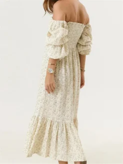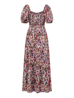 Woman Vintage Floral Dress Puff Long