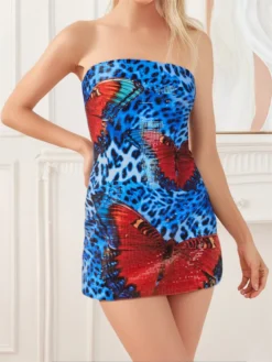 Women Tube Top Dress Retro Flower Printed
