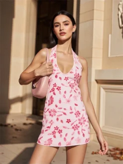 Floral Halter Mini Dress for Women Summer
