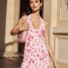 Floral Halter Mini Dress for Women Summer Fashionable Beaded Sleeveless Backless Bodycon Short Dress