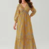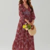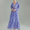Womens Bohemian Floral Dress Summer Half Sleeve V Neck Shirred Waist A-Line Dress Long Flowy Dress