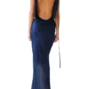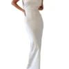 Women Long Dress, Sleeveless Draped Neck Backless Lacing Slim Fit Dress for Party Cocktail Evening