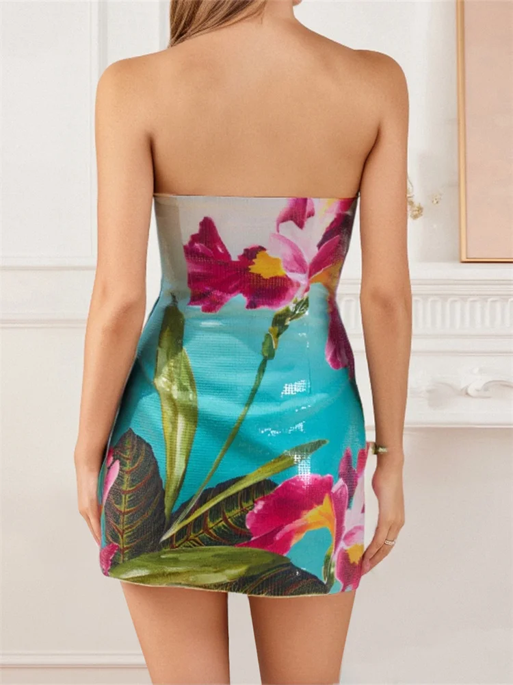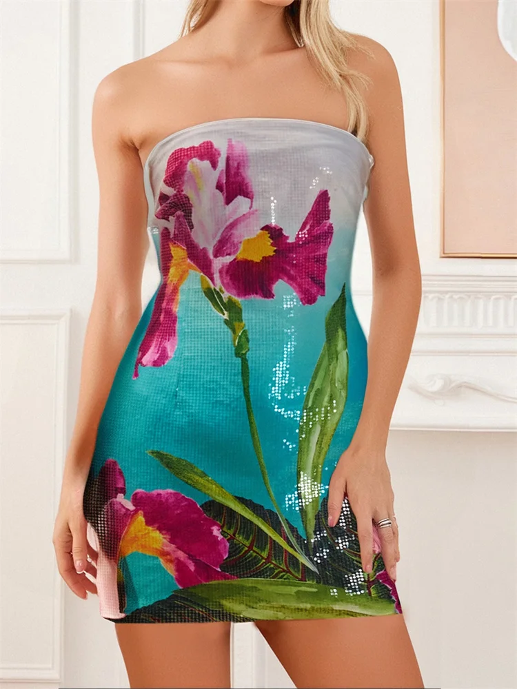 Women Mini Tube Top Dress Slim Flower//Starfish Off Shoulder Sleeveless Bodycon Dress for Party Club