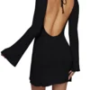 Women’s Fall Mini Dress Long Sleeve Open Back Contrast/Solid Color Knit Dress Casual Sweater Dress