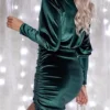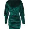 Women’s Fall Velvet Bodycon Dress Solid Color Round Neck Lantern Long Sleeve Ruched Mini Dress
