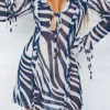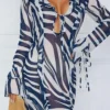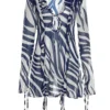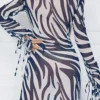 Womens Summer Short Tie Up Dress Long Sleeve V Neck Zebra Print Hollow Dress