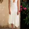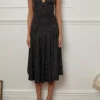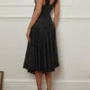 Women’s Tank Dress Stylish Dot Print Pleated Waist Sleeveless V Neck A Line Dress for Spring & Summer